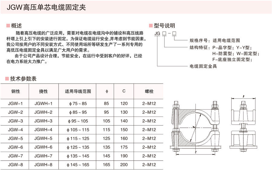 JGW型高壓單芯電纜固定夾