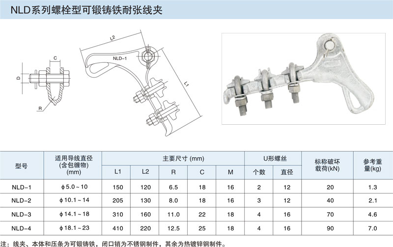 NLD系列螺栓型可鍛鑄鐵耐張線夾