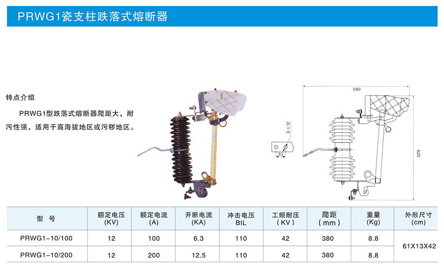 PRWG1瓷支柱跌落式熔斷器